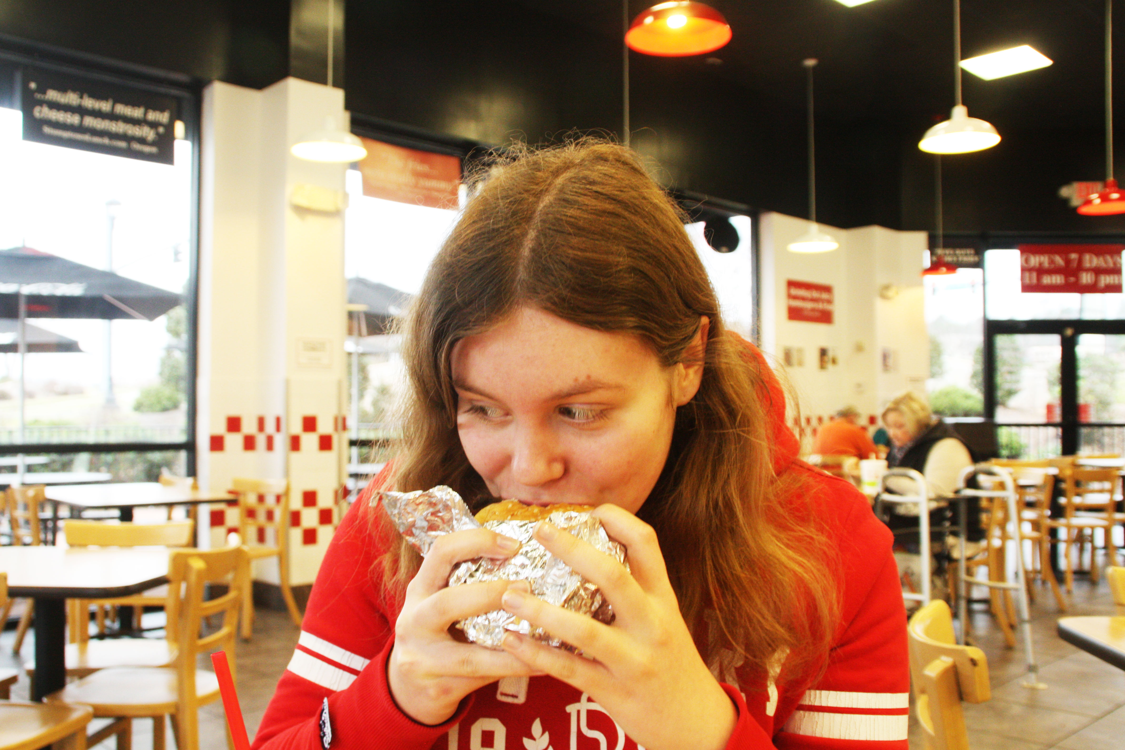 P.S.: Ich hatte heute (nach dem Krankenhaus) meinen ersten amerikanischen Burger. Wir sind zu Five Guys gegangen, war super. Und die Mitarbeiter hatten alle voll Spaß mir den "perfekten" ersten Burger zusammenzustellen. Im "Anhang" oder halt einfach links unten iwo im Eintrag (glaube ich zumindest) ist das Foto von mir, wie ich reinbeiße. :'D Sehr mysteriös..